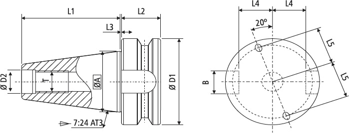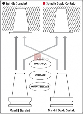 1 - Os mandris duplo contato podem ser usados em spindle standard e spindle duplo contato. Com mandril e spindle duplo contato, é atingido 100% de contato.