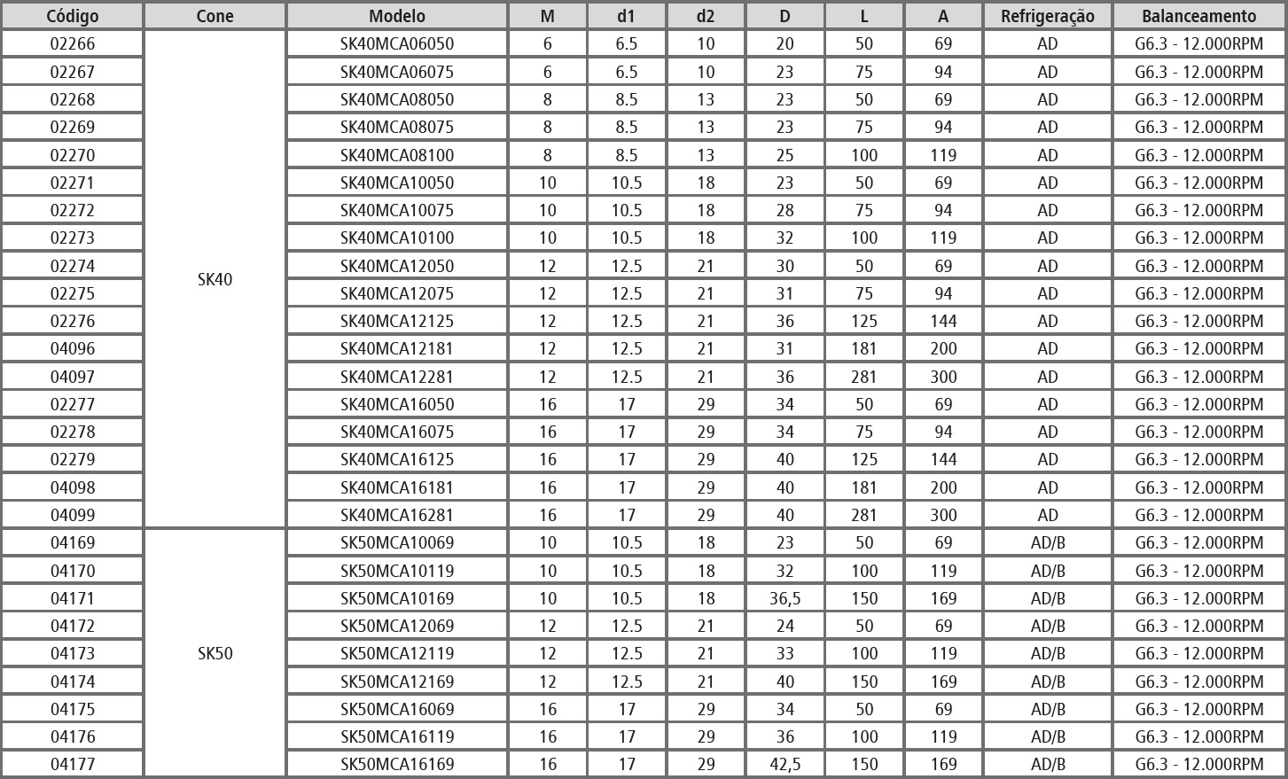 Tabela Técnica: