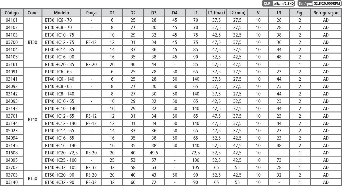 Tabela Técnica: