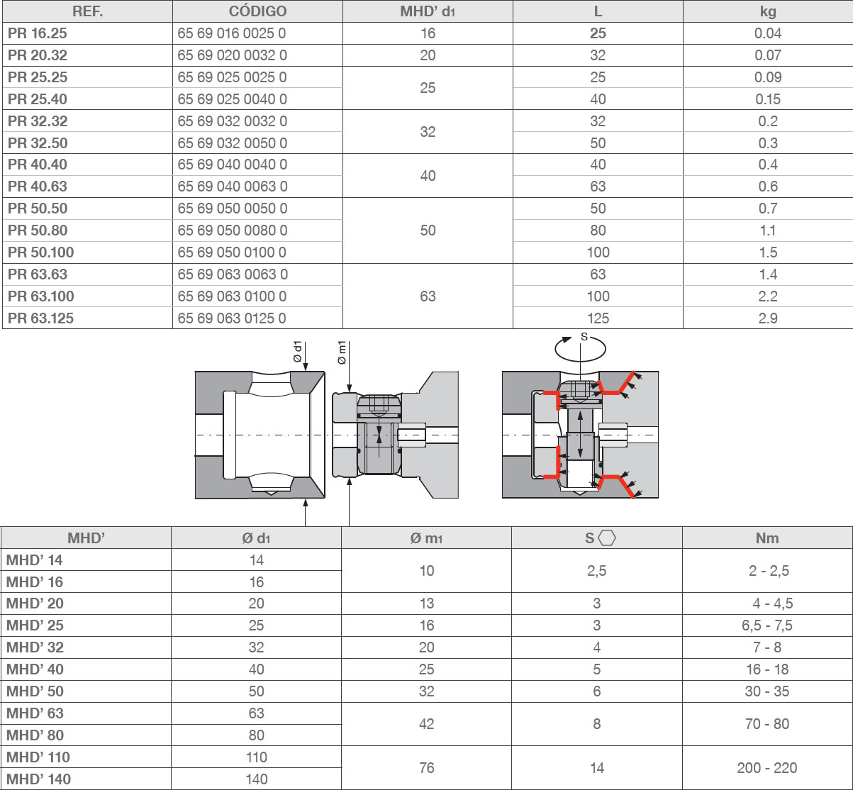 Extensões de vários comprimentos são disponíveis para cada tamanho de MHD’, permitindo maior fl exibilidade em usinagem profundas.