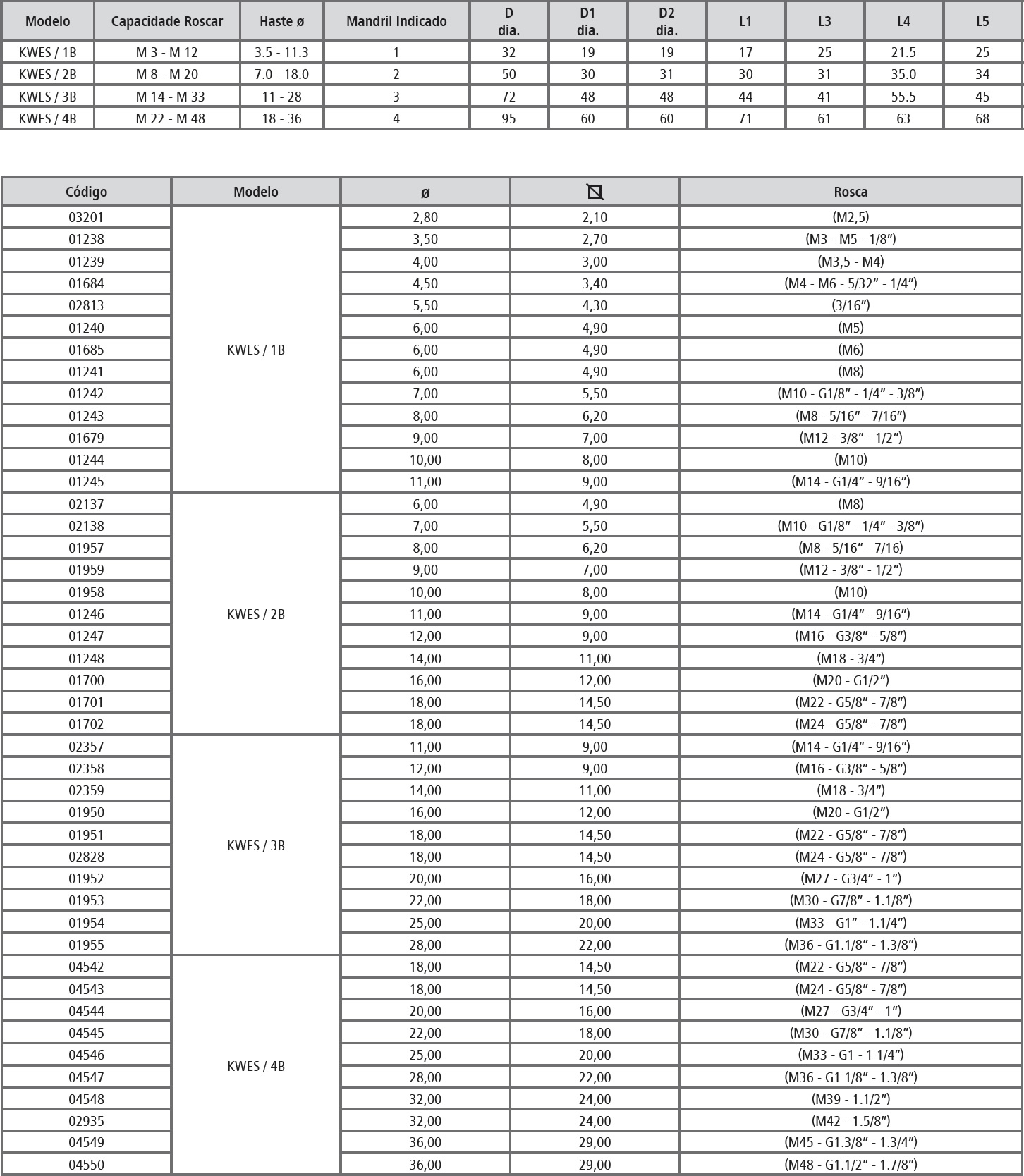 Tabela Técnica: