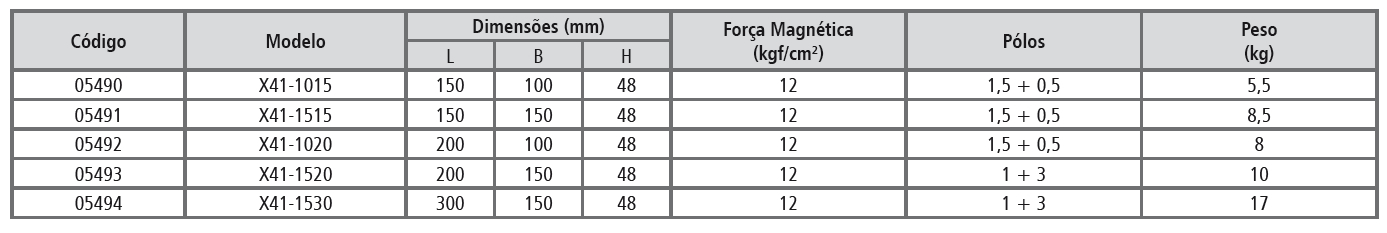 As mesas magnéticas permanentes são indicadas para usinagem leve, máquinas de eletroerosão e retíficas planas. Com uma adequada distribuição dos pólos a força magnética é distribuída uniformemente possibilitando a usinagem de peças finas e pequenas.