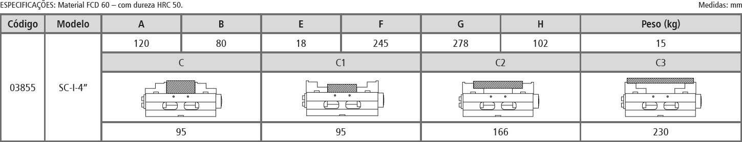 Altura fixa, então várias morsas podem ser utilizadas juntas.