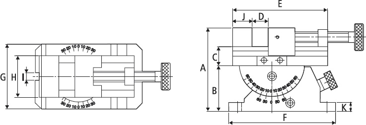 Os movimentos angulares e basculantes desta morsa, a tornam ideais para utilização em superfícies planas ou inclinadas, utilizada para furação angular em diversos tipos de máquinas assim como em retífi cas, fresadoras, eletroerosões, etc.