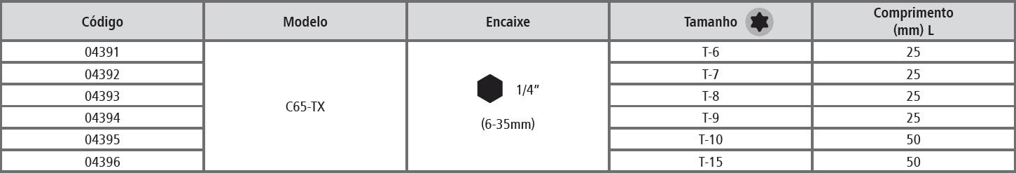 Ponteira Torx com Encaixe 1/4 Sextavado