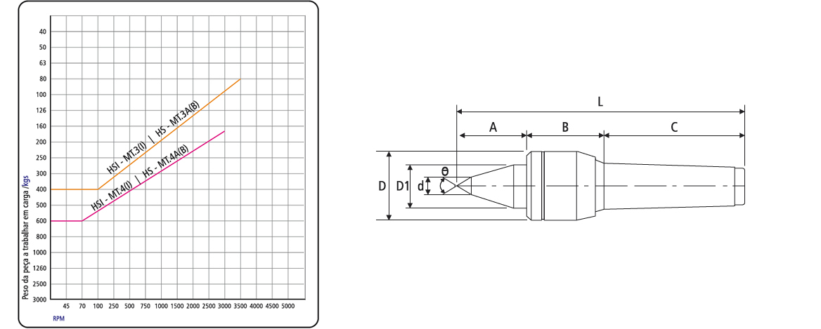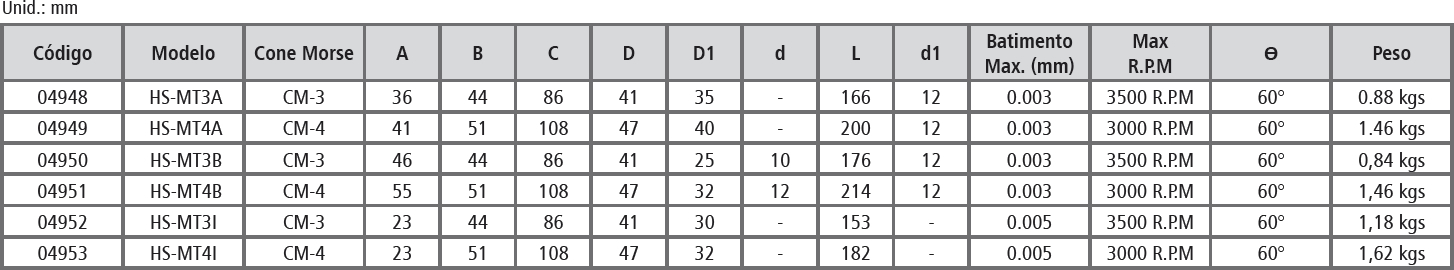 O eixo e o corpo principal são produzidos em ligas de aço especiais com tratamento térmico (HRC 60° +/-1°).