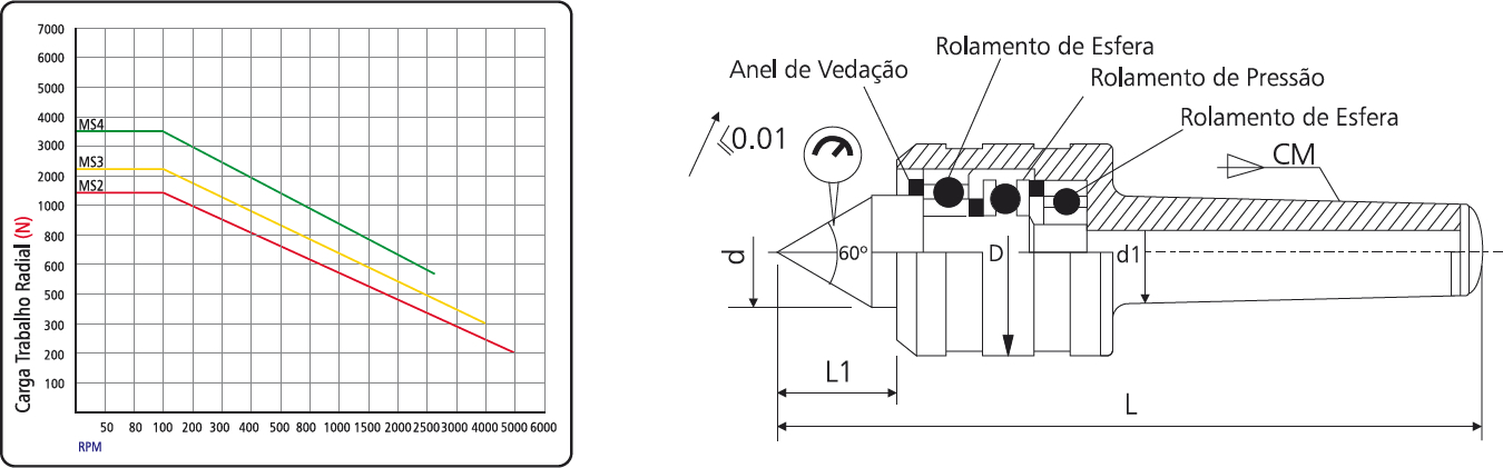 Ponto Rotativo utiliza a combinação de rolamento de esferas e rolamento de pressão.
