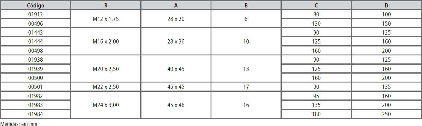 Tabela Técnica: